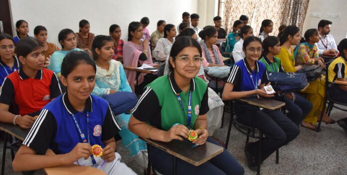 कैथल, 6 अगस्त। हर घर तिरंगा अभियान के तहत पीएनबी बैंक ग्रामीण स्वरोजगार प्रशिक्षण संस्थान ग्योंग में कार्यक्रम का आयोजन किया गया। इसमें तिरंगा राखी एवं रंगोली बनाओ तथा प्रश्नोतरी प्रतियोगिता आयोजित की गई। प्रशिक्षणार्थियों व आरोही स्कूल के विद्यार्थियों ने बढ़चढ़ कर भाग लिया। एडीसी दीपक बाबूलाल करवा ने बतौर मुख्य अतिथि शिरकत की। उन्होंने विद्यार्थियों का हौसला बढ़ाने के साथ तिरंगे की गौरव गाथा भी सुनाई। विद्यार्थियों द्वारा एडीसी सहित अन्य अधिकारियों की कलाई पर राखी बांधी गई।