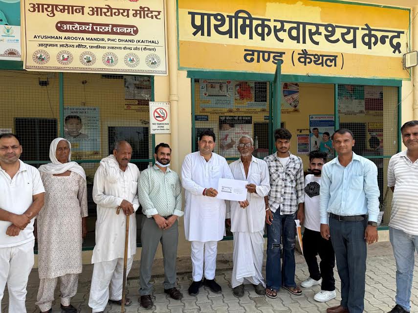 कैथल, 27 जून। कस्बे की राधा कृष्ण धर्मशाला में स्थित प्राथमिक स्वास्थ्य केंद्र ढांड में आयुष्मान भारत-प्रधानमंत्री जन आरोग्य योजना के तहत 70 वर्ष और उससे अधिक आयु के वरिष्ठ नागरिकों के लिए विशेष आयुष्मान कार्ड बनाने के लिए शिविर का आयोजन किया। जिसकी अध्यक्षता भाजपा ढांड मंडल अध्यक्ष विजेंद्र मैहला जडौला ने की। मौके पर ही विजेंद्र मैहला ने पात्र दर्जलों वरिष्ठ नागरिकों को स्वास्थ्य विभाग द्वारा बनाए गए आयुष्मान कार्ड वितरित किए। शिविर को संबोधित करते हुए भाजपा नेता विजेंद्र मैहला ने कहा कि आज
