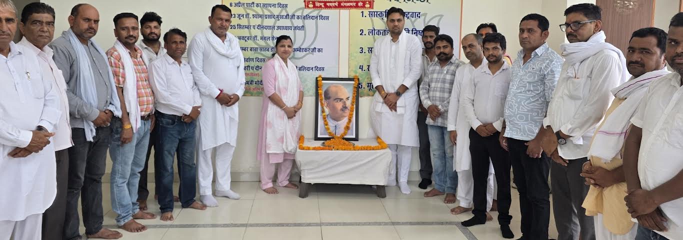 को हुआ था। वे बैरिस्टर और शिक्षाविद् थे। वे 33 वर्ष की आयु में कलकत्ता विश्वविद्यालय के सबसे कम उम्र के कुलपति बने। उन्होंने कुछ समय के लिए बंगाल के वित्त मंत्री और बाद में नेहरू मंत्रिमंडल में उद्योग और आपूर्ति मंत्री के रूप में कार्य किया, 1950 में दिल्ली समझौते के कारण उन्हें अपने पद से इस्तीफा देना पड़ा। इसके बाद उन्होंने 21 अक्टूबर 1951 को भारतीय जनसंघ की स्थापना की और इसके पहले अध्यक्ष बने। इस मौके पर मुनीष कठवाड़, सुरेश संधू, जिला मीडिया प्रभारी राज रमन दीक्षित, नरेश सजुमा, राम शर्मा सुमित कुमार आदि कार्यकर्ता मौजूद थे।