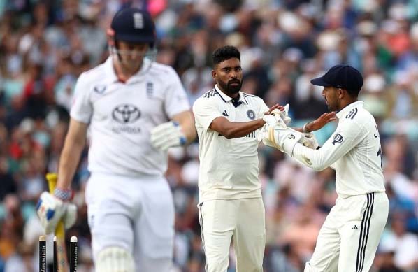 सिराज और प्रसिद्ध कृष्णा ने दूसरे सत्र में तीन-तीन विकेट झटके। इंग्लैंड ने मुख्य बल्लेबाज जो