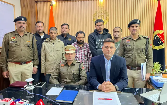 शनिवार को पुलिस लाइन सेक्टर 30 में आयोजित की गई प्रेस कांफ्रेंस के दौरान सहायक पुलिस