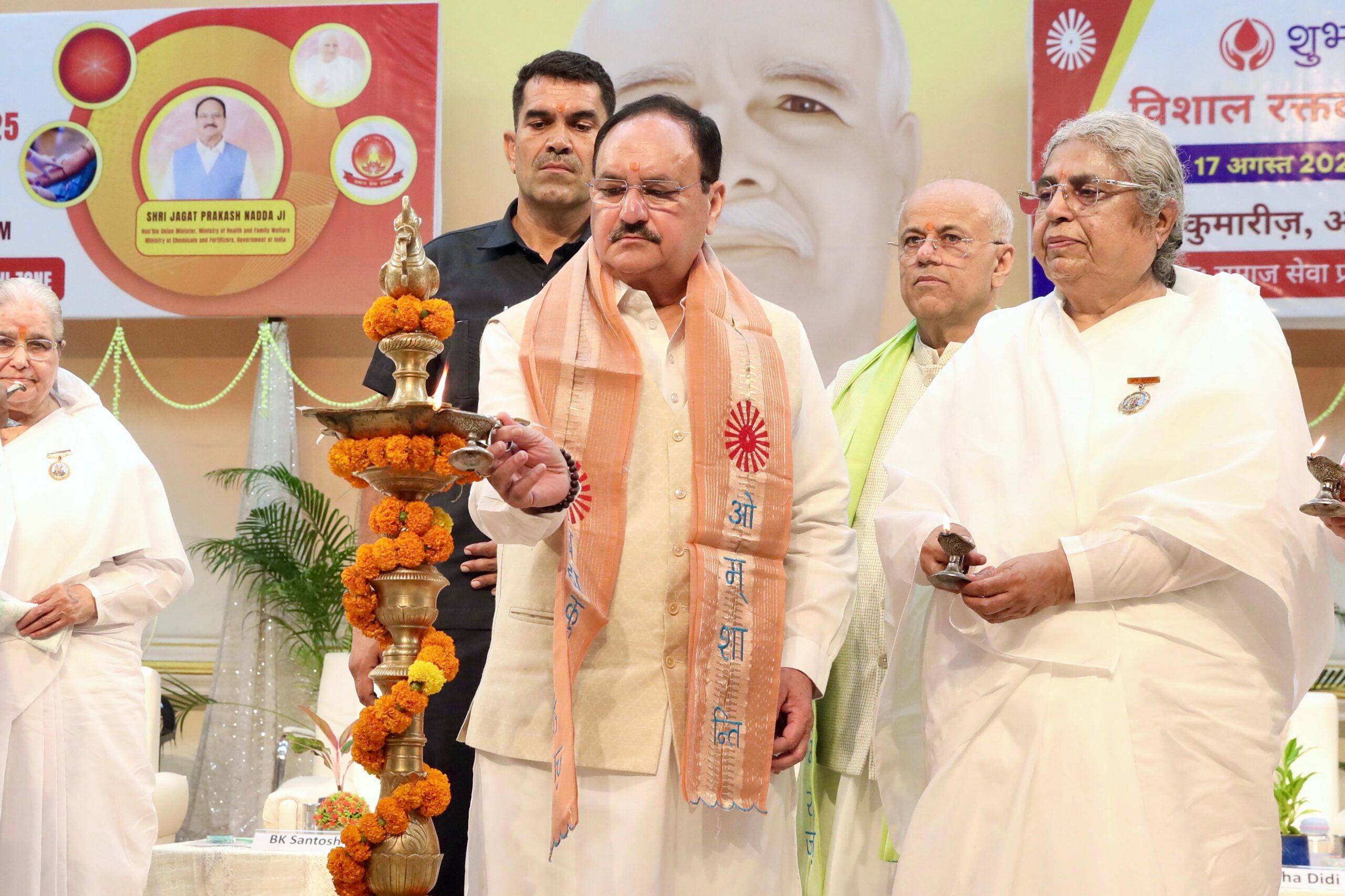 जे.पी. नड्डा ने ओम शांति रिट्रीट सेंटर में विशाल रक्तदान अभियान 2025 का किया शुभारंभ