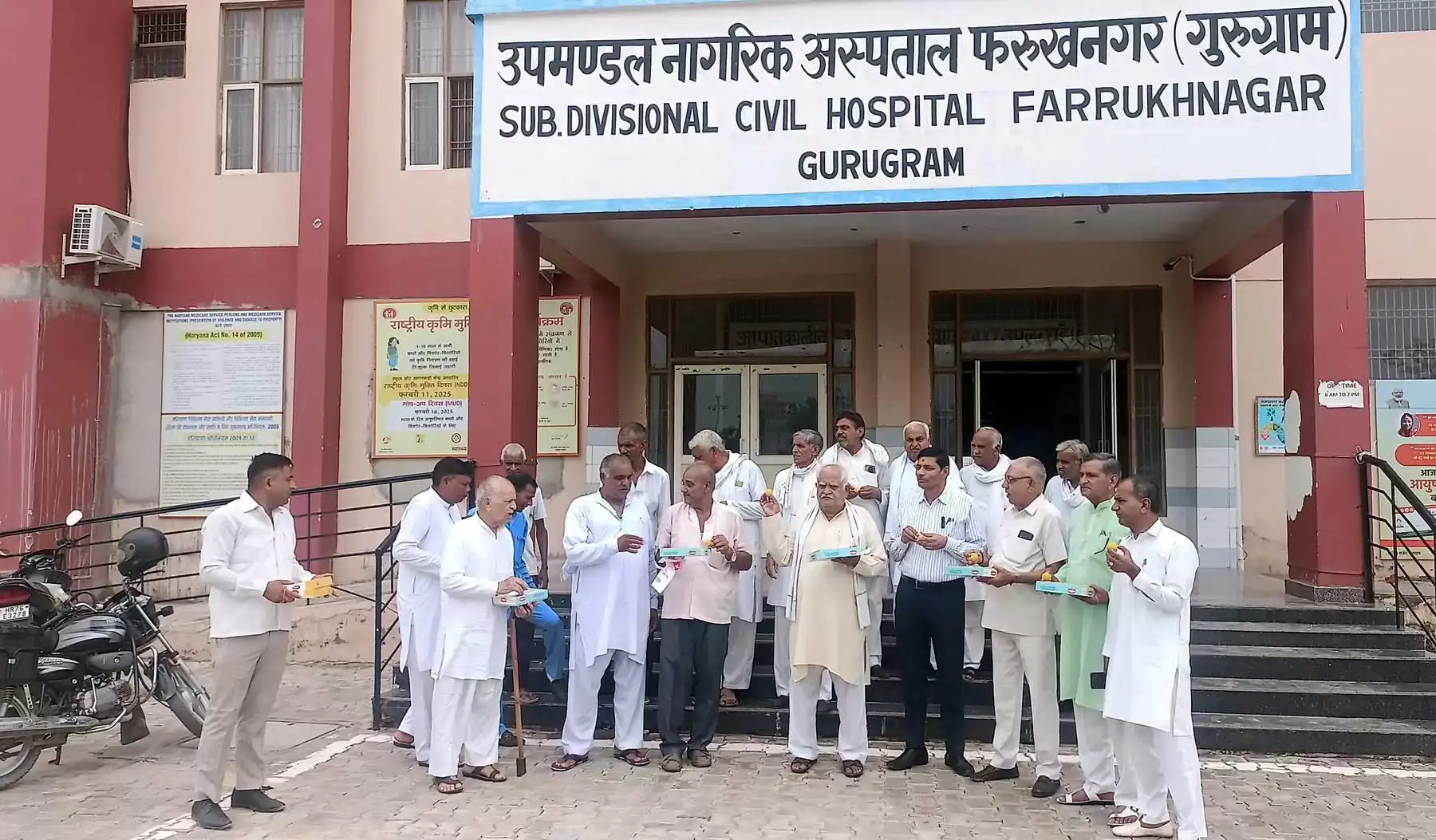 फर्रुखनगर अस्पताल में एकत्रित होकर लोगों ने एक्स-रे मशीन मिलने की मनाई खुशी