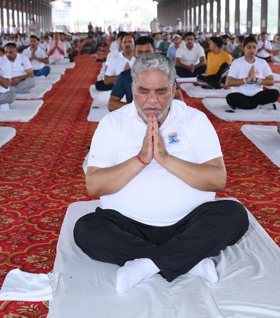 गत 27 मई से योग दिवस के उपलक्ष्य में आयोजित किए जा रहे कार्यक्रमों में योग—संगम, योग—बंधन, योग—पार्क, योग—समावेश, योग—प्रभाव, योग—कनेक्ट, हरित योग, योग महाकुंभ के माध्यम से लाखों लाख लोग जुड़े और योग की महत्ता को समझा है। इसी उपलक्ष्य में आज राज्य के 22 जिलों और 121 खंडों में एक साथ आयोजित योग कार्यक्रमों में पूरे प्रदेश में लाखों की संख्या में लोग भाग लें रहे हैं। उन्होंने कहा कि भव्य योग समारोह के लिए वे हरियाणा योग आयोग, आयुष विभाग, जिला प्रशासन, पतंजलि योग पीठ और उन सभी स्वयं सेवकों का हृदय से धन्यवाद करते हैं, जिनके अथक प्रयासों से सभी को योग की जानकारी मिल रही है। हरियाणा सरकार नित नए कदम उठा रही है, जहां एक ओर योग को