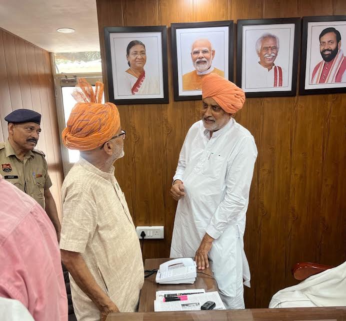 कैथल, 19 जुलाई । भाकियू मान गुट हरियाणा प्रदेशाध्यक्ष एवं केंद्र सरकार द्वारा गठित एम.एस.पी. समिति के सदस्य ठाकुर गुणी प्रकाश के नेतृव में किसानों का एक प्रतिनिधिमंडल आज हरियाणा के कृषि मंत्री श्याम सिंह राणा से उनके चंडीगढ़ निवास स्थान पर भेंटवार्ता की और प्रदेश में किसानों को यूरिया खाद की आ रही किल्ल्त व खाद की कालाबाजारी की समस्या से विस्तार पूर्वक अवगत करवाया। भाकियू प्रतिनिधिमंडल को कृषि मंत्री श्याम सिंह राणा ने आश्वासन दिया कि हरियाणा की नायब सरकार कदम से कदम मिलाकर चल रही है और किसानों के दुख-सुख में बराबर की भागीदार है।