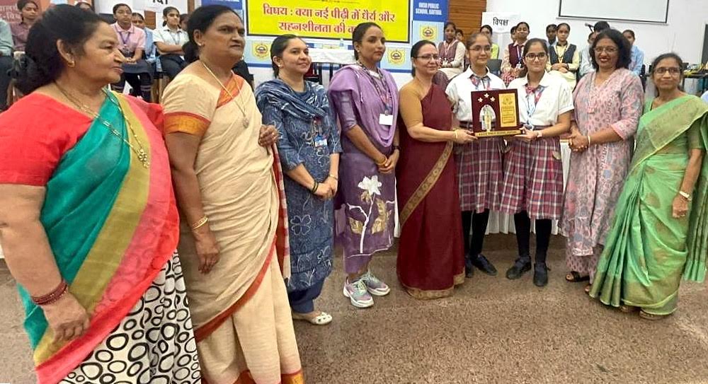कैथल । आरकेएसडी पब्लिक स्कूल में आज अंतर-विद्यालयीय हिंदी वाद-विवाद प्रतियोगिता का आयोजन किया गया जिसमें शहर के कई विद्यालयों के छात्रों ने भाग लिया। प्रतियोगिता का विषय क्या नई पीढ़ी में धैर्य और सहनशीलता की कमी है, था। छात्रों व छात्राओं ने इसके पक्ष व विपक्ष में अपने विचार रखे। छात्रों द्वारा अपने मत को सही सिद्ध करने के लिए बड़े स्टीक तर्क प्रस्तुत किए गए। सभी छात्र-छात्राओं ने पूरी ऊर्जा व प्रेरणा से प्रतियोगिता में भाग लिया। भाग लेने वाले विद्यालयों में शेमरोक पब्लिक स्कूल, एमडीएन पब्लिक स्कूल, इंदिरा
