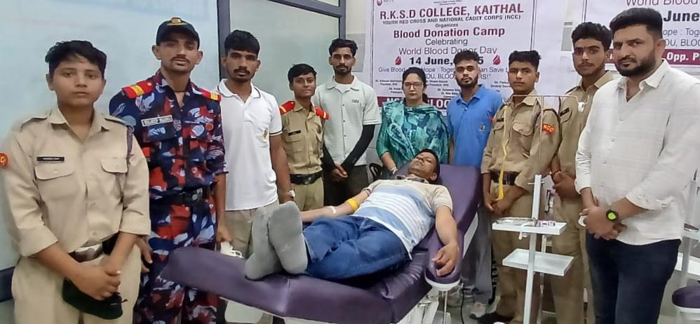 कैथल । आरकेएसडी महाविद्यालय की राष्ट्रीय कैडेट कोर एनसीसी और यूथ रेडक्रॉस वाईआरसी ने विश्व रक्तदाता दिवस के उपलक्ष्य में रक्तदान शिविर का आयोजन किया। इस रक्तदान शिविर का आयोजन नोबल ब्लड बैंक के सहयोग से किया गया। यूथ रेडक्रॉस के संयोजक डॉ. सुरेन्द्र सिंह और एनसीसी की सीटीओ डॉ. रितु कंग ने विश्व रक्तदाता दिवस के