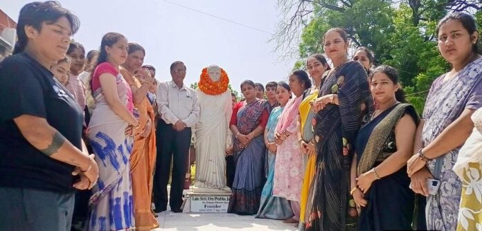 तथा छात्राएं उपस्थित थीं। स्वर्गीय ओम प्रभा जैन की प्रतिमा पर पुष्पांजलि अर्पित की गई। कार्यक्रम के दौरान उनके दूरदर्शी नेतृत्व, सेवा भावना और शिक्षा के क्षेत्र में उनके अमूल्य योगदान को भावभीनी श्रद्धांजलि दी गई। अपने संबोधन में राम बहादुर खुरानिया ने छात्राओं को स्वर्गीय ओम प्रभा जैन के प्रेरक व्यक्तित्व से परिचित कराया। उन्होंने कहा कि उनका जीवन समाज सेवा, महिला सशक्तिकरण और शिक्षा के प्रचार-प्रसार के लिए समर्पित था। उन्होंने इस बात पर भी प्रकाश डाला कि कॉलेज के विद्यार्थी अपने सांस्कृतिक मूल्यों और