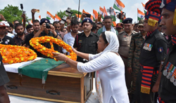 कैथल । भाजपा जिला अध्यक्षा ज्योति सैनी ने बुधवार को सीमा पर आतंकियों से मुठभेड़ में शहीद हुए लांस नायक नरेंद्र कुमार को उनके अंतिम संस्कार में शामिल होकर श्रद्धांजलि अर्पित की। ज्योति सैनी ने कहा कि आज हमारा देश शहीदों के कारण ही सुरक्षित है। धन्य हैं वे मां-बाप जिन्होंने नरेंद्र संधू जैसे वीर सपूत को जन्म दिया जो देश की सीमा पर अपना