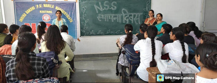 कैथल । इंदिरा गांधी पीजी महिला महाविद्यालय में एनएसएस का स्थापना दिवस बड़े उत्साह से मनाया गया। कॉलेज की छात्राओं को राष्ट्र सेवा की शपथ दिलवाई गई तथा उन्हें एनएसएस दिवस के महत्व और इसके उद्देश्यों के बारे में विस्तार से जानकारी दी गई। कार्यक्रम की शुरुआत बीए तृतीय वर्ष की छात्रा रूपल ने एनएसएस गीत प्रस्तुत करके की। कॉलेज