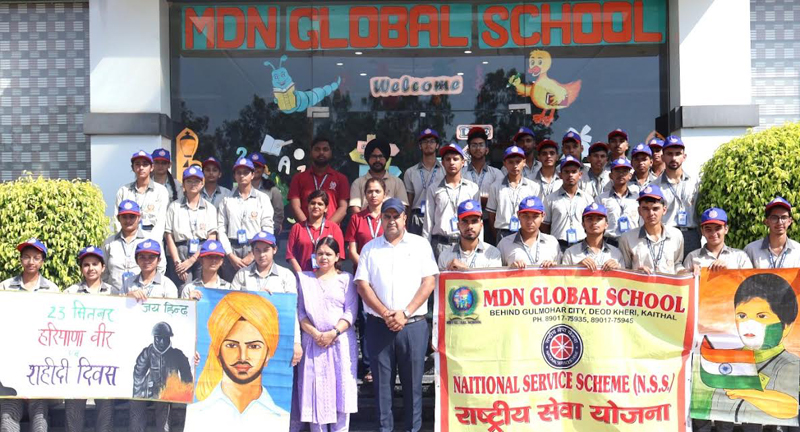 कैथल । एमडीएन ग्लोबल स्कूल कैथल की एनएसएस इकाई द्वारा सेवा पखवाड़ा एवं हरियाणा शहीदी दिवस के अवसर पर विशेष कार्यक्रमों का आयोजन किया गया। कार्यक्रम का शुभारंभ मुख्य अतिथि डा. विनोद कुमार डायरेक्टर, विद्यालय की चेयरपर्सन निधि कंसल, मैनेजर गौरव गर्ग एवं प्राचार्य डा. संत कौशिक ने जागरूकता रैली को हरी झंडी दिखाकर