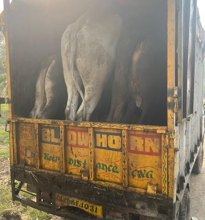 और उस गाड़ी का पीछा किया। एएसआई राकेश कुमार, एएसआई राजेन्द्र अपनी टीम के साथ मौके पर पहुंचे और संयुक्त रूप से कार्रवाई की। चालक ने कुछ दूरी पर गाड़ी साइड में लगाई और मौके से फरार हो गया। टीम ने गाड़ी की तलाशी ली जिसमें से दो नंदी और एक गाय को सुरक्षित बरामद किया गया। बरामद किए गए तीनों गोवंशों को पुलिस की