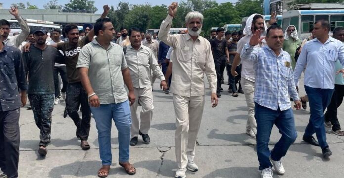 किया। प्रदर्शन में विशेष रूप से मौजूद राज्य नेता कृष्ण किछाना, विक्रम गुहना, सुशील कुमार, महावीर संधू, जिला महासचिव बलवान कुंडू, अमित शर्मा, सुरेश करोड़ा, सुरेश मराठा, अंचित राज ने कहा कि 16 जून को राज्य परिवहन फतेहाबाद डिपो की एक बस संख्या एचआर-62 जीवी 2491 हरिद्वार से फतेहबाद जा रही थी। जब हिसार बस अड्डे पर पहुंची तो सवारियों के साथ कुछ लडक़े भी बस में बैठ गए। जब परिचालक कृष्ण कुण्डू द्वारा एक युवक को टिकट लेने के लिए कहा तो उसने जवाब दिया कि मैं टिकट नहीं लूंगा ओर मुझे ढंडूर उतार देना।