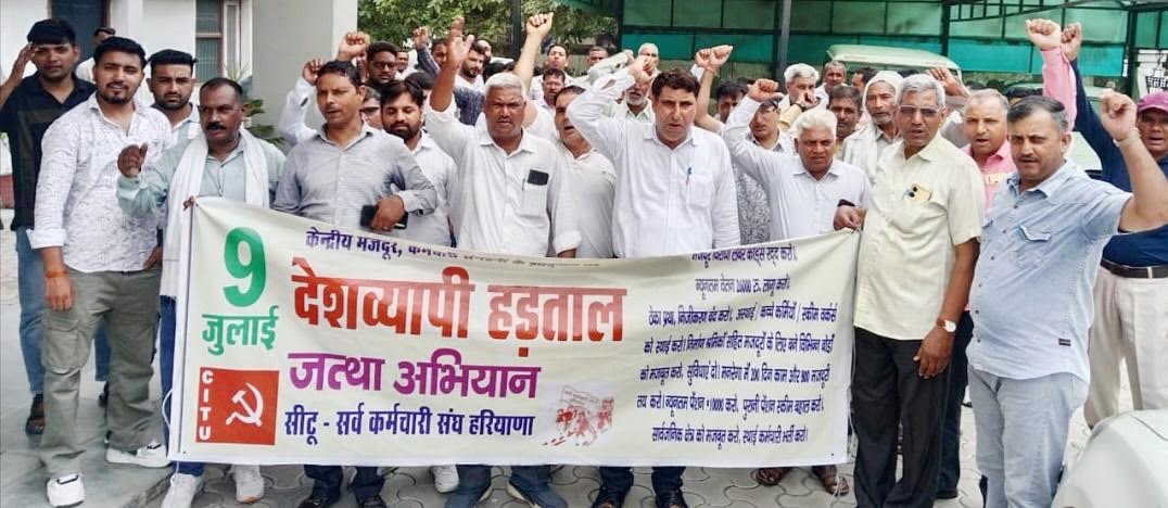 कैथल । सर्व कर्मचारी संघ हरियाणा व सीटू ने 9 जुलाई की राष्ट्रव्यापी हड़ताल की तैयारी को लेकर राज्य स्तरीय जत्थे चलाते हुए हनुमान वाटिका, बिजली दफ्तर, पब्लिक हैल्थ व नगरपालिका में कर्मचारियों, मजदूरों और परियोजना कर्मियों की सभाएं एवं गेट मीटिंग की। इसकी अध्यक्षता संयुक्त रूप से एसकेएस के जिला प्रधान शिवचरण व सीटू के जिला प्रधान