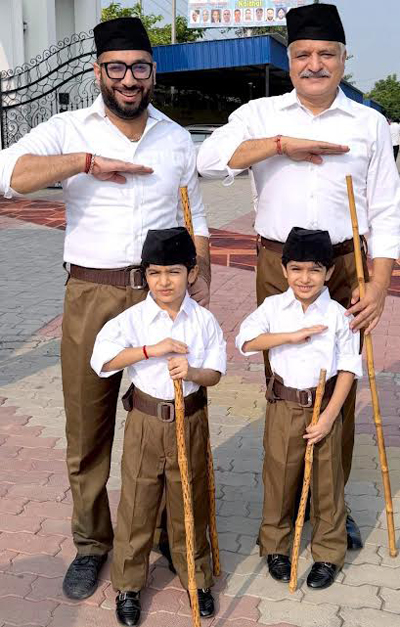 कैथल । आरएसएस शताब्दी वर्ष के उपलक्ष्य में जाट स्कूल मैदान में संघ द्वारा शताब्दी वर्ष में प्रवेश करने पर पद संचालन किया गया। भाजपा सेवा पखवाड़े के जिला संयोजक अमरजीत छाबड़ा ने अपने पुत्र नमन छाबड़ा, 5 वर्ष की आयु में पृथ्वी राज सिंह व जय विराज सिंह पोतों के साथ इस कार्यक्रम रूपी पवित्र यज्ञ में भाग लिया व पद संचलन किया।