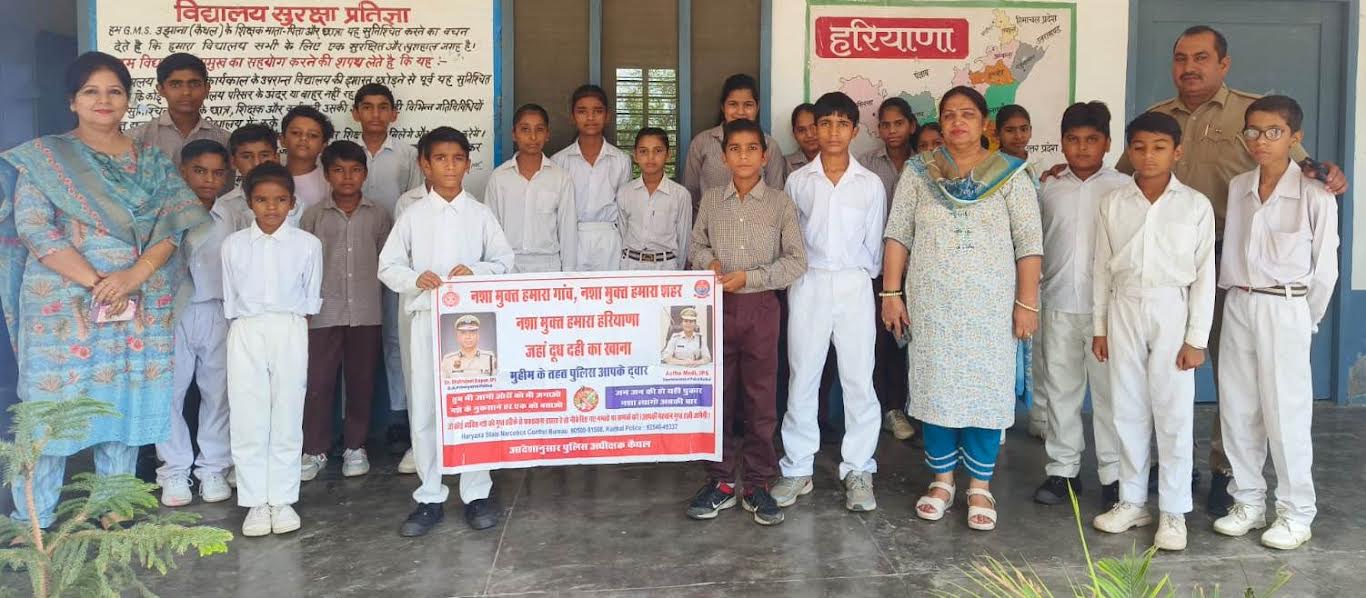 कैथल, 07 अगस्त। एसपी आस्था मोदी के निर्देशन में जिला पुलिस द्वारा “नशा मुक्त हो जिला” अभियान के तहत लगातार जनजागरूकता कार्यक्रम चलाए जा रहे हैं। इसी कड़ी में वीरवार को एसआई कर्मबीर, एएसआई ओमप्रकाश, एचसी सुनील कुमार, महिला सिपाही किस्मत, एसपीओ राजपाल तथा एसपीओ प्रदीप कुमार की टीम द्वारा कैथल के गांव उझाना,