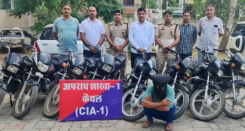 कैथल, 20 अगस्त । वाहन चोरों पर एसपी आस्था मोदी के निर्देशानुसार जिला पुलिस द्वारा विशेष मुहीम चलाकर शिकंजा कसा जा रहा है। इसी कड़ी में सीआईए-1 पुलिस द्वारा उल्लेखनीय सफलता हासिल करते हुए एक बाइक चोर को काबू कर लिया गया। जिसके कब्जे से 8 चोरी की बाइक बरामद हुई।