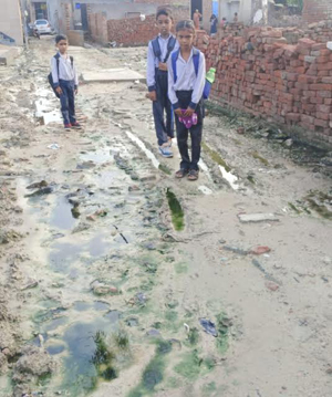 कि गली के दोनों साइडों की नालियां भी पूरी तरह टूटी हुई है जिससे पूरे मुहल्ले का पानी कच्ची गली में ठहर जाता है। सुबह-सुबह स्कूल जाते छोटे-छोटे बच्चों को निकालने में भारी परेशानी हो रही है। यहां तक कि यहां के स्थानीय लोग नरकीय जीवन जी रहे हैं। वार्ड वासी हुकमी, कर्म, सेमी लाल, रामपाल, किताबो, चतरो, मीना, रमेश, राजा, नरेश,