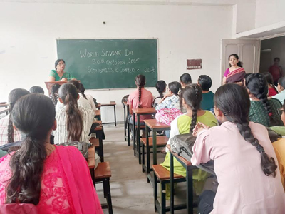बताया कि वर्ल्ड सेविंग दिवस 2025 की थीम आपका भविष्य बचत से शुरू होता है यह संदेश युवाओं को लक्षित करता है। ताकि वे कम उम्र से ही आर्थिक अनुशासन अपनाए और जिम्मेदार निवेश की ओर कदम बढ़ाए । प्राचार्या डॉ संगीता शर्मा ने छात्राओं को संबोधित करते हुए कहा कि वित्तीय सुरक्षा उज्जवल भविष्य के लिए जरूरी है व प्रत्येक व्यक्ति के
