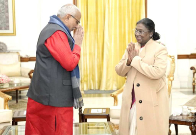 भवन में राष्ट्रपति द्रौपदी मुर्मू से मुलाकात की और उन्हें नव वर्ष की शुभकामनाएं दीं।