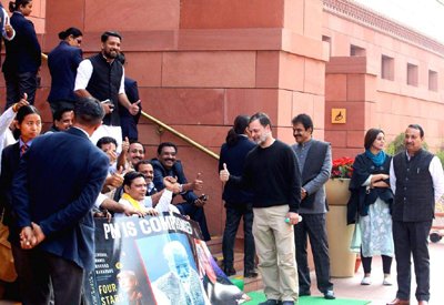 लोकसभा की कार्यवाही हंगामे के कारण स्थगित होने के बाद बाहर आ रहे कांग्रेस के अन्य कई