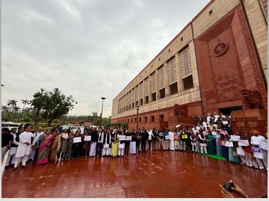 संसद भवन परिसर में प्रदर्शन किया। इसमें समाजवादी पार्टी के अध्यक्ष अखिलेश यादव सहित कई