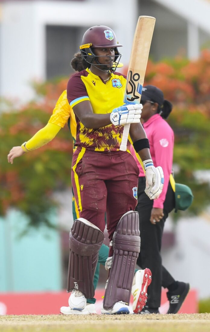 से (42) रनों की पारी खेली। 18वें ओवर में सुने लूस ने हेली मैथ्यूज को बोल्ड कर वेस्टइंडीज को