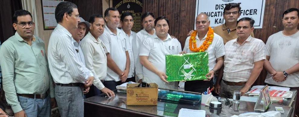 कैथल । हरियाणा स्कूल लेक्चरर एसोसिएशन कैथल ने जिला प्रधान राजीव मलिक के नेतृत्व में जिला शिक्षा अधिकारी कैथल से मीटिंग की। हसला कैथल ने जिला शिक्षा अधिकारी का अतिरिक्त कार्यभार ग्रहण करने पर रोहताश वर्मा का पुष्पमाला पहनाकर स्वागत किया। संगठन ने लेक्चरर साथियों की एसीपी, मेडिकल बिल्स, एलटीसी आदि समस्याओं को रखा।