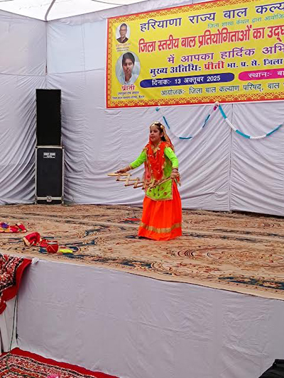 कैथल, 15 अक्टूबर। जिला बाल कल्याण परिषद कैथल की अध्यक्षा एवं डीसी प्रीति के मार्गदर्शन में बाल भवन परिसर में विभिन्न प्रतियोगिताएं चल रही हैं। बुधवार को एकल नृत्य प्रथम व द्वितीय समूह तथा एकल शास्त्रीय नृत्य द्वितीय, तृतीय व चतुर्थ समूहों में आयोजित करवाई गई। जिनमें बच्चों ने अपनी कला का प्रदर्शन किया। इन सभी प्रतियोगिताओं में जिले