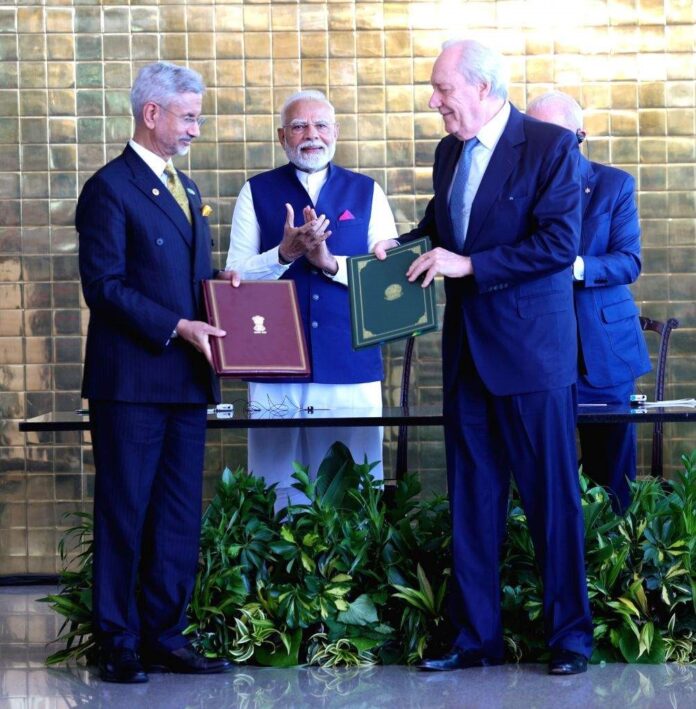 के साझा लक्ष्यों को हासिल करने के लिए तीन समझौतों और कई अन्य समझौता ज्ञापनों पर हस्ताक्षर किये हैं। ब्राजील की आधिकारिक यात्रा पर गये प्रधानमंत्री नरेन्द्र मोदी की ब्राजील के राष्ट्रपति लूला द सिल्वा के साथ मंगलवार देर रात यहां हुई द्विपक्षीय बैठक तथा प्रतिनिधिमंडल स्तर की वार्ता के बाद इन समझौतों पर हस्ताक्षर किये गये। दोनों देशों के अधिकारियों ने प्रधानमंत्री मोदी और लूला की मौजूदगी में अंतरराष्ट्रीय आतंकवाद और संगठित अपराध से निपटने में सहयोग पर समझौते,वर्गीकृत सूचनाओं के आदान-प्रदान और पारस्परिक संरक्षण समझौते और नागरिक मामलों में पारस्परिक कानूनी सहायता पर समझौते पर हस्ताक्षर किये।