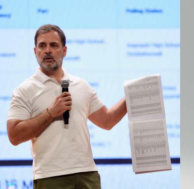 राहुल गांधी ने कहा कि हमारे संविधान की नींव ‘एक व्यक्ति, एक वोट’ के सिद्धांत पर टिकी है।