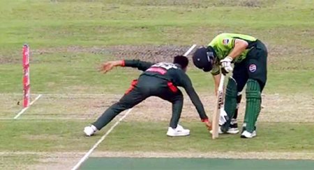 गेंद रोकने के चक्कर में आगा को ब्लॉक कर दिया। उसके बाद क्रीज से बाहर होने के बावजूद सलमान