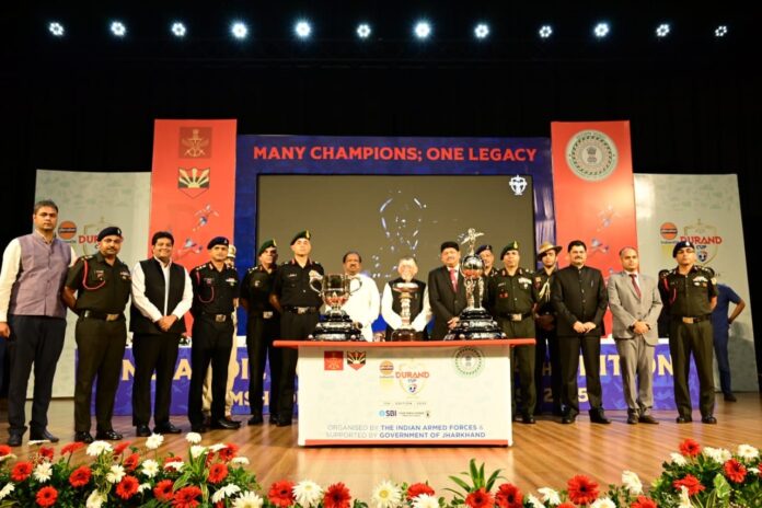 जमशेदपुर, 07 जुलाई । 134वें डूरंड कप फुटबॉल टूर्नामेंट की शुरुआत 23 जुलाई से हो रही है, जिसकी ट्रॉफी का अनावरण सोमवार को एक्सएलआरआई ऑडिटोरियम में किया गया। इस मौके पर राज्यपाल संतोष गंगवार ने डूरंड कप जैसे अंतरराष्ट्रीय स्तर के आयोजन को झारखंड के लिए गर्व का क्षण बताया है। इस फुटबॉल टूर्नामेंट में 24 टीम भाग ले रही हैं। जमशेदपुर के जेआरडी स्पोर्ट्स कॉम्प्लेक्स में छह मुकाबले खेले जाने हैं।