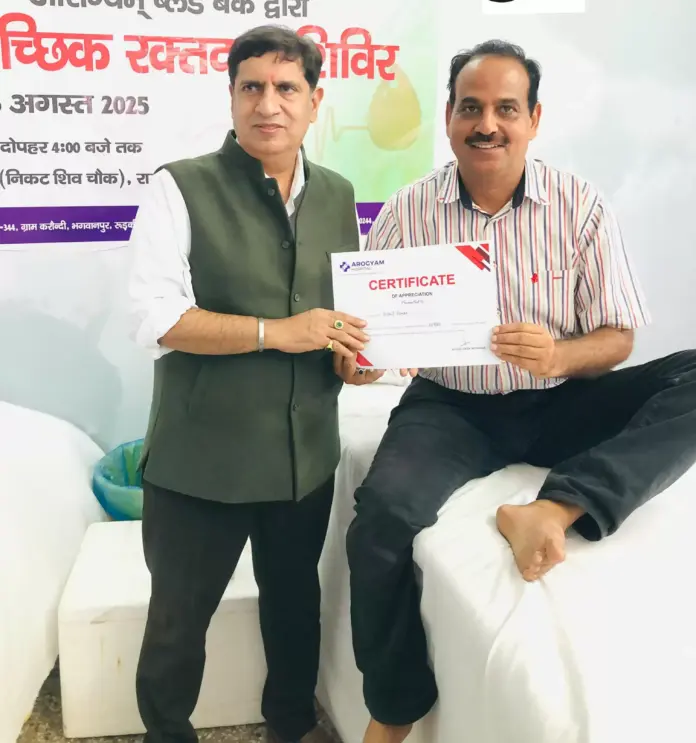 आयोजित रक्तदान शिविर में 100 यूनिट रक्त एकत्र किया गया।