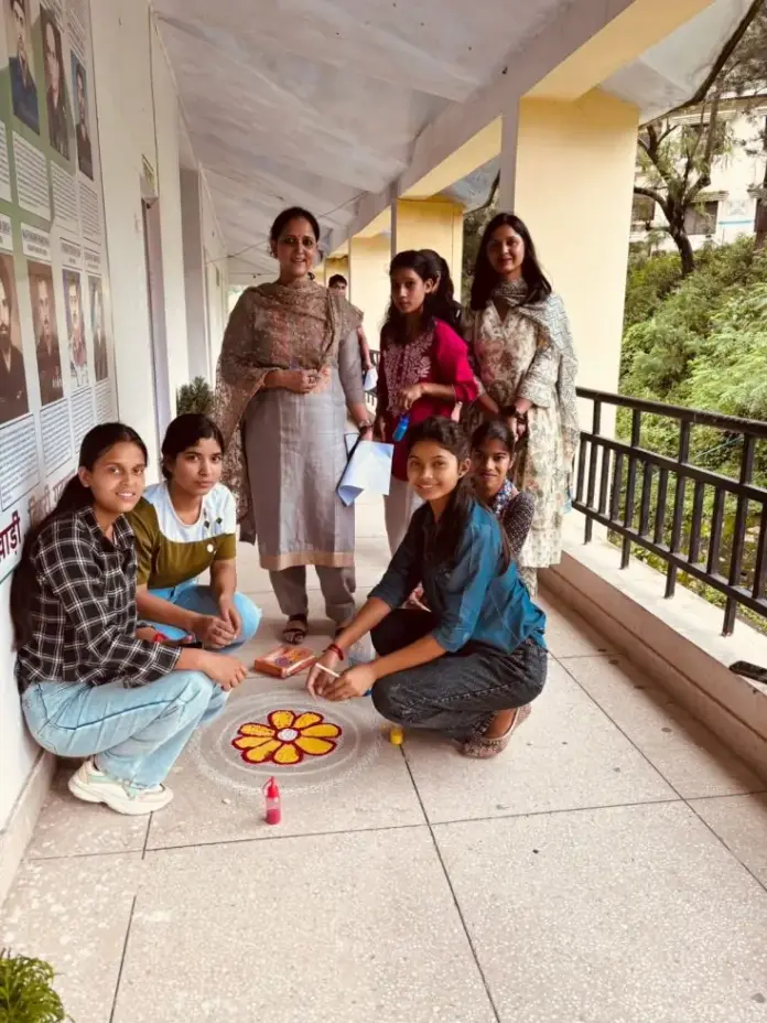 रंगोली प्रतियोगिता में छात्राओं ने देशभक्ति से ओत-प्रोत रंग-बिरंगे चित्रों के माध्यम से आजादी के